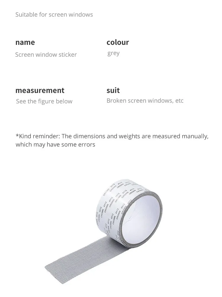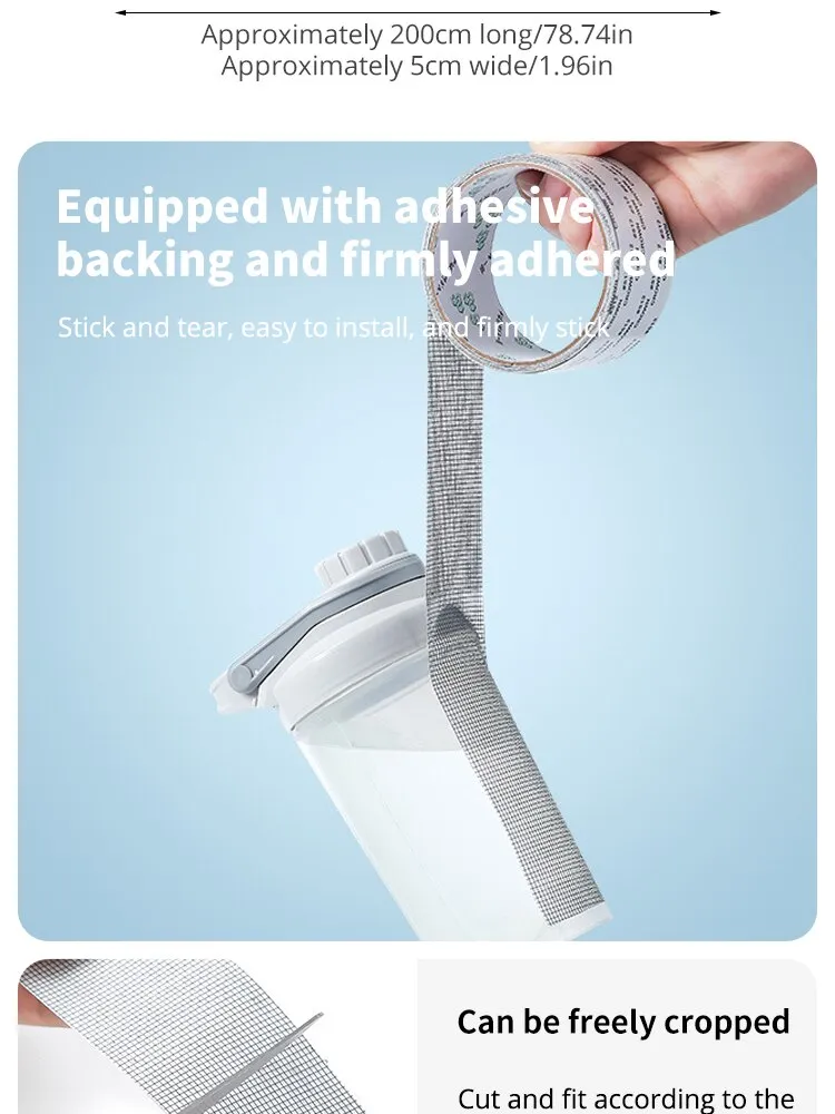 Durable Adhesive Design: This net tape has a strong adhesive which ensures a secure and long-lasting bond. Moreover, it effectively seals damaged areas on window mesh screens.