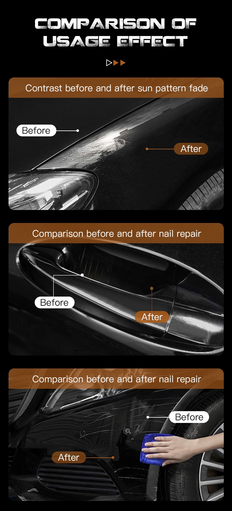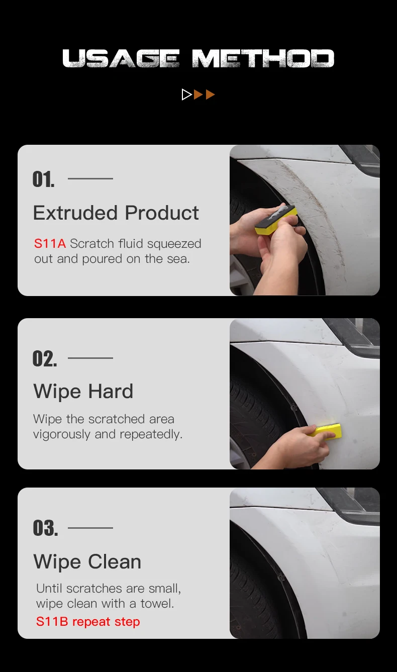 Car Scratch Repair is designed to restore original shine and color. Its activity decomposition grind sand, filler ingredients can quickly fill after decomposition and repair paint scratches. Easy to remove the oxide layer on the surface and stubborn dirt and color and shine paint layer again.