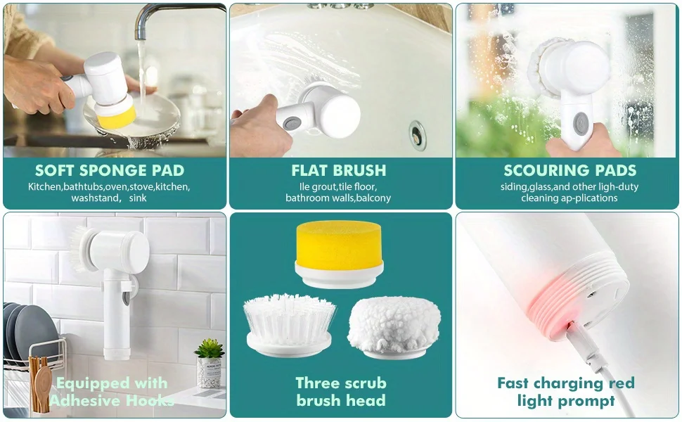 ⭐ Magic Electric Cleaning Turbo Scrub 5 in 1 Magic Turbo Scrub - Save your hands, save time in washing and polishing. We present to you a super rotating brush 5 in 1 for dishes, tiles, carpets, polishing furniture, washing and polishing cars.